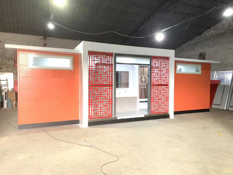 MORE拼裝廁所;在廠里做好各個廁所部件,再到現場組裝在一齊,適合不易運輸的大型廁所。這座箱式廁所,女廁5個蹲位內配工具間,男廁2個蹲位+2小便斗,第三衛生間由殘疾馬桶、助力洗手盆和兒童馬桶、兒童洗手盆外加嬰兒臺等設施。廁所前后有窗,通風采光,前部走廊裝有屋檐,防雨防曬。此廁所位于公路綠道邊,整體大氣,功能齊全,造型美觀,是一道難得的靚麗景觀!